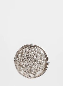 ANN DEMEULEMEESTER's Mena Medallion Ring showcases natural sterling silver stones that shake around inside a glass crown for a unique statement piece.